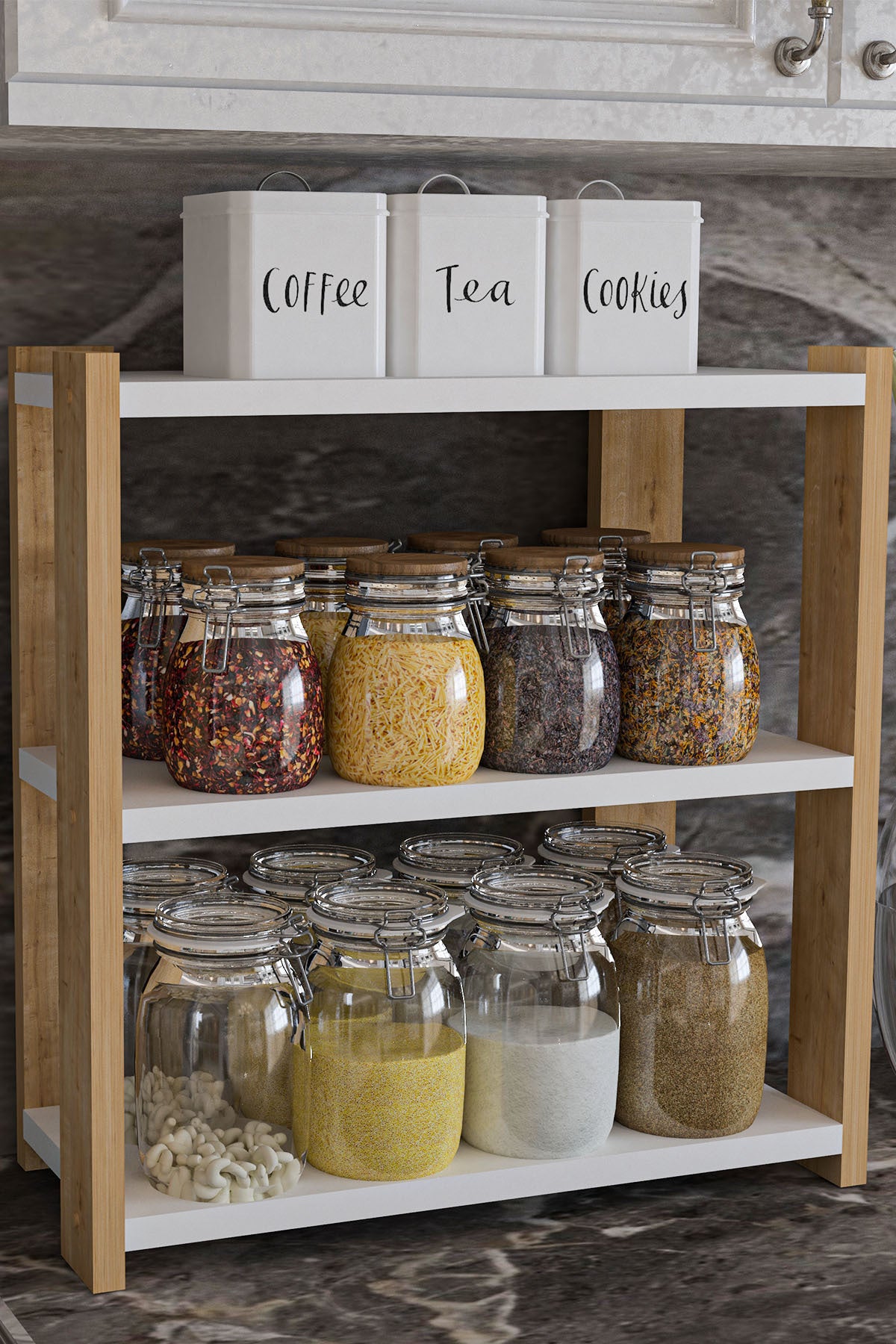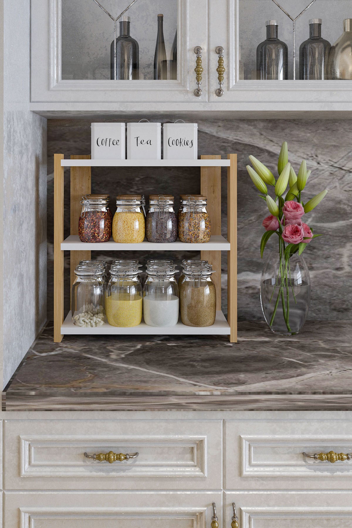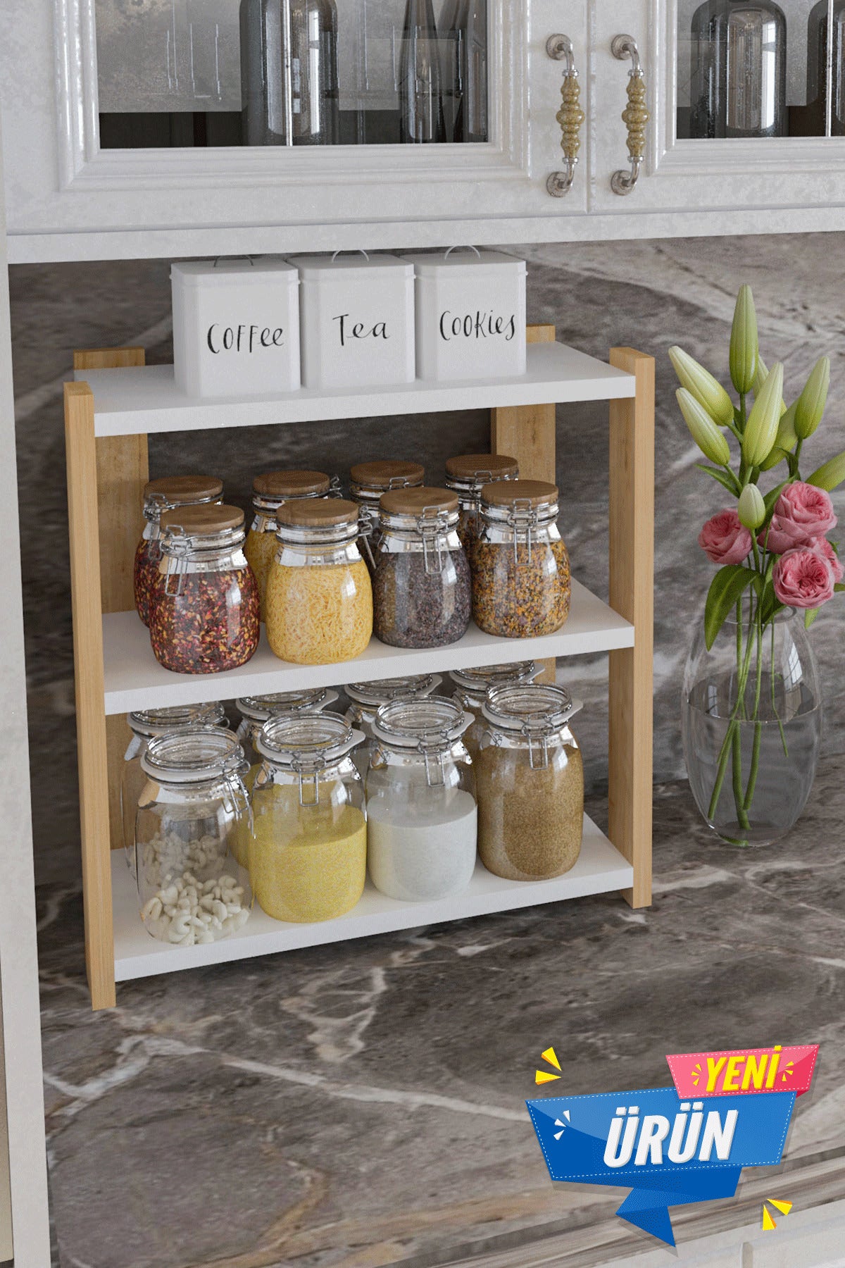 Baharatlık Çok Amaçlı Raf Tezgah Üstü Üç Katlı Baharatlık