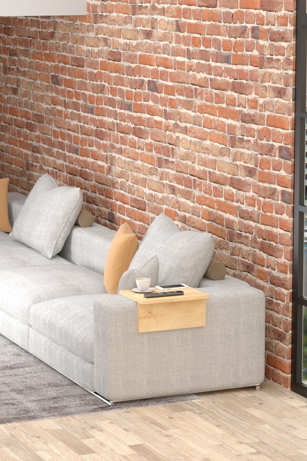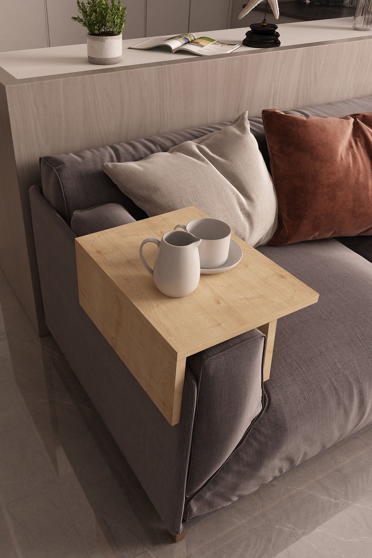 Koltuk Yan Sehpa Kolçak Sehpası Meşe Renk